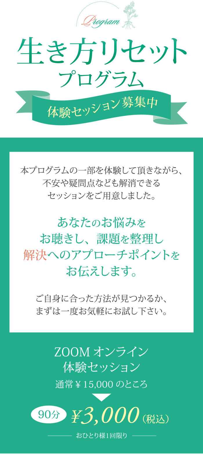 PC用の画像 スマホ用の画像 生き方リセットプログラム体験セッションに申込み 生き方リセットプログラム体験セッションに申込み
